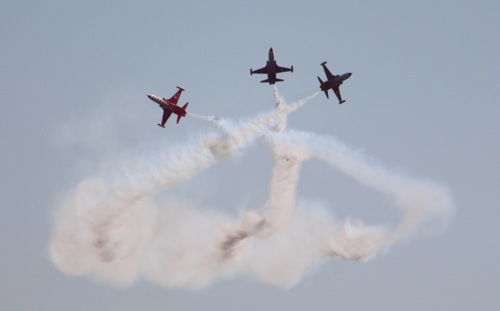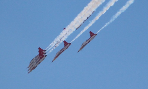 Obwohl alle Flugshows ziemlich weit oben im Himmel stattfanden, ist es dank Megapixel klasse, die Fotos am PC zu bearbeiten, um dann doch noch prima Details darstellen zu können. Außer die