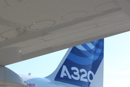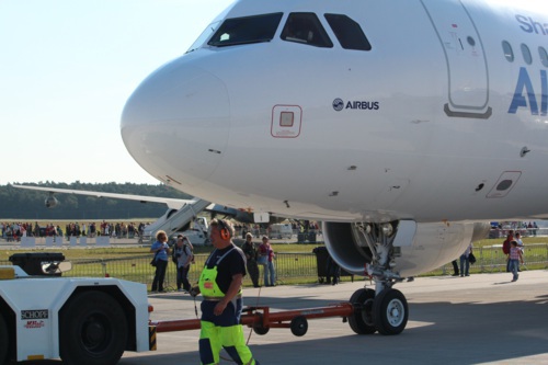 geschossenen Fotos vom Airbus A320, da stand ich tatsächlich daneben als er an uns vorbei geschleppt wurde und stand dabei auch unterhalb der Tragfläche. Klasse!
